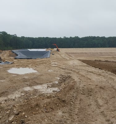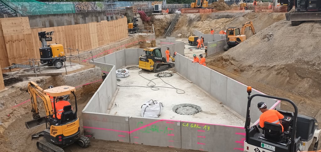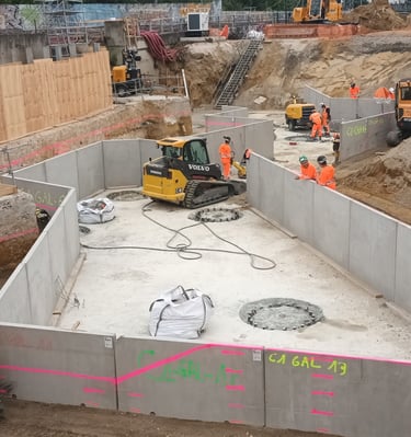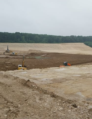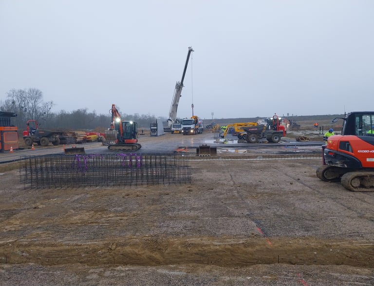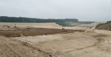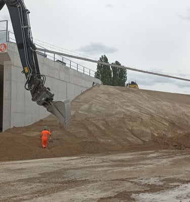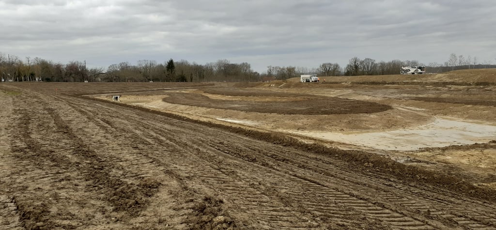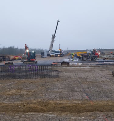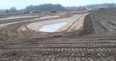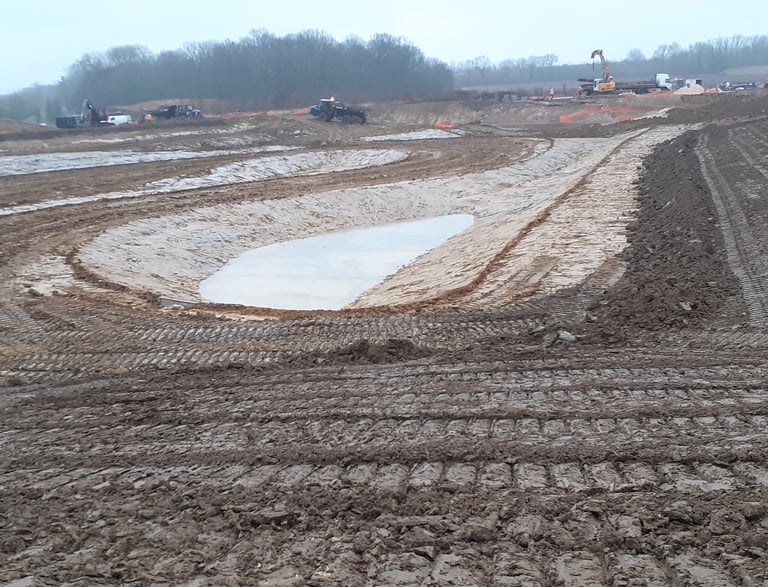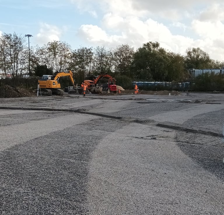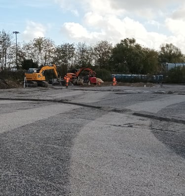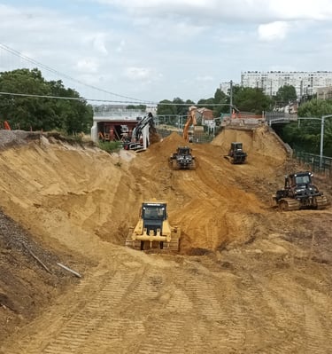 Lever topographique, montage projets de terrassement 3D+ réseaux d'assainissement, calcul des volumes, fichier machine guidage, mise en route + suivi de chantier + recollement