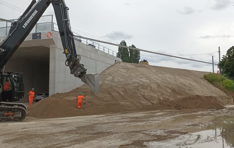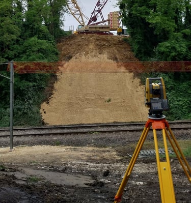 Lever topographique, montage projets de terrassement 3D, calcul des volumes, fichier machine guidage, mise en route + suivi de chantier + recollement